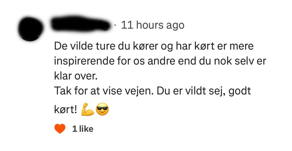När jag laddat upp rundan på Stava och skrivit om mitt dygn fick jag en av dom finaste kommentarerna man kan få. Den värmde!